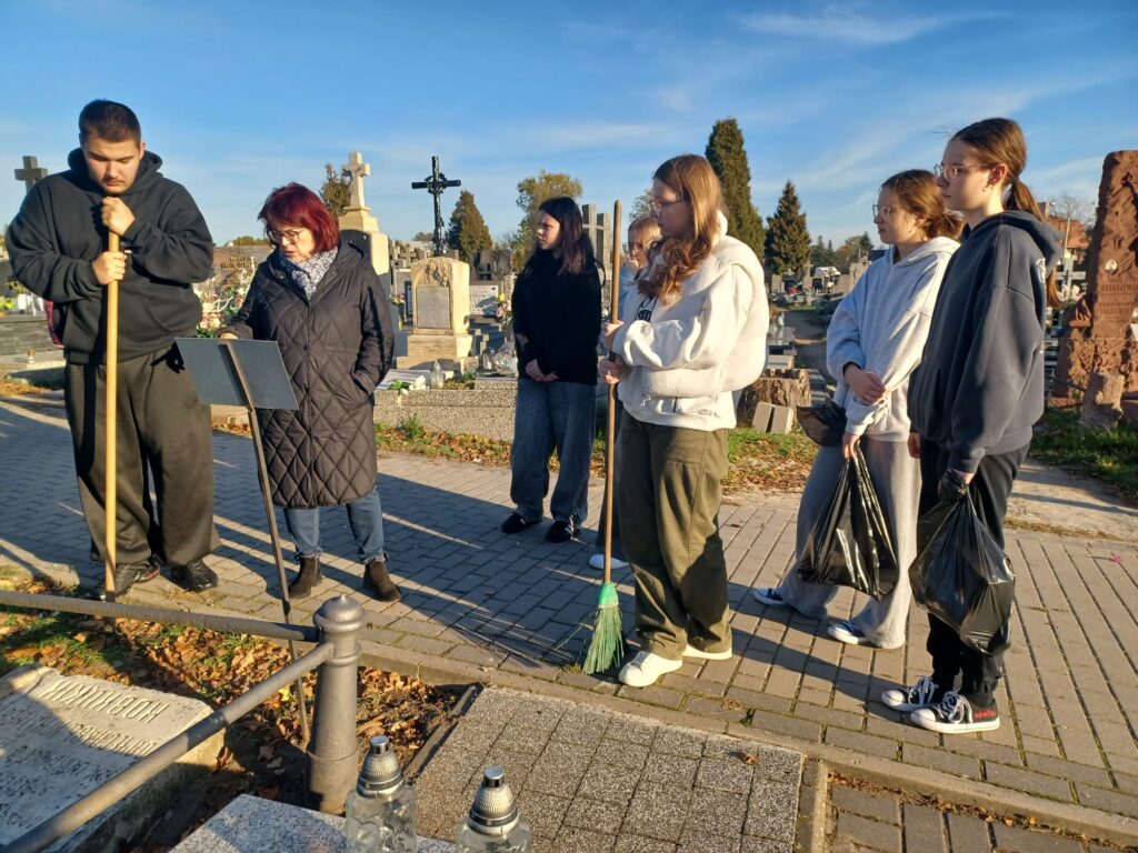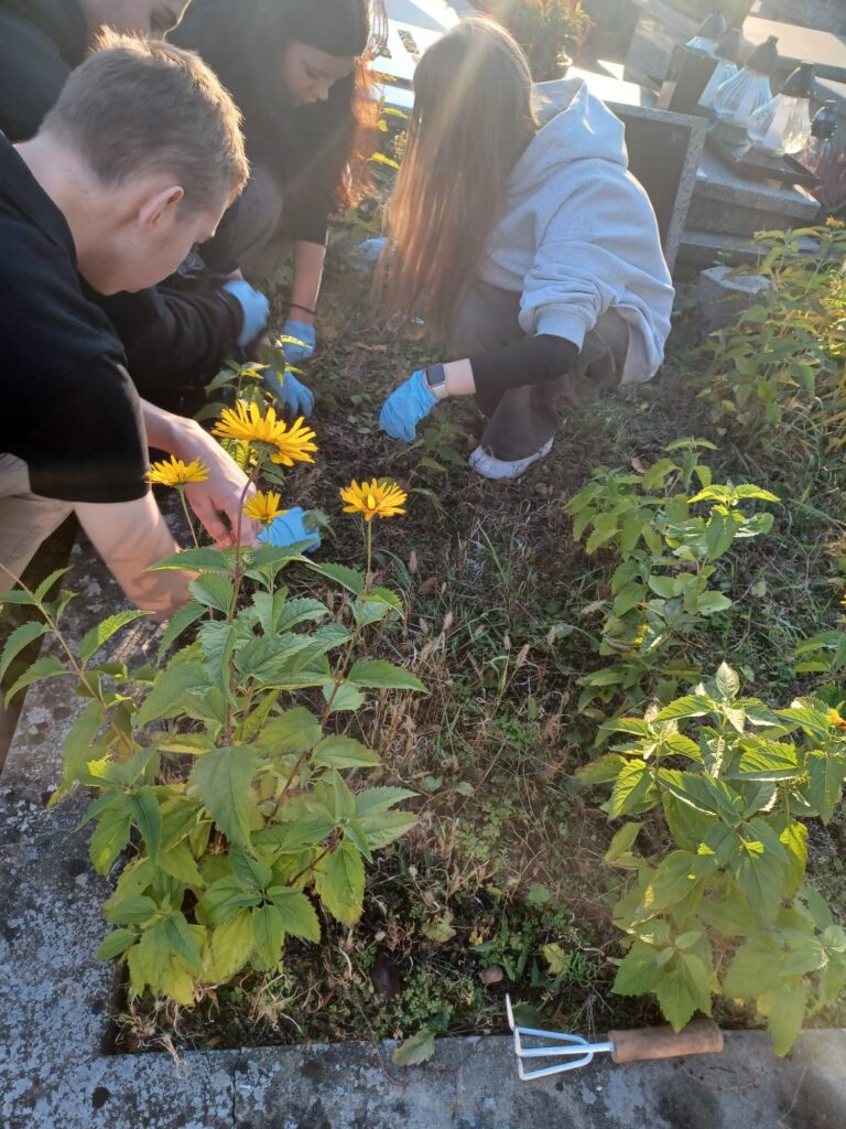 23.10. wspólnie z naszą Panią Kierownik również w tym roku kontynuowaliśmy swoją współpracę z TPMM – porządkowaliśmy zabytkowe nagrobki na naszym mińskim cmentarzu. Szanujemy tradycję i kształtujemy swoją tożsamość narodową. Dziękujemy również Pani doktor historii Lilii Małgorzacie Kłos, która była z nami, pokazała nam najstarszy nagrobek z 1826r pomnik Hipolita Nowotki – I burmistrza Mińska Mazowieckiego oraz przekazała ciekawostki związane z historią miasta.