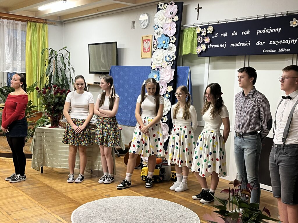 21.10– Odbyła się uroczysta wieczornica z okazji DEN, na początku zachwycił nas piękny występ wokalny mieszkanki internatu, Wiktorii, która zaśpiewała utwór Marka Grechuty, następnie zaprezentowali się pierwszoklasiści w zabawnym przedstawieniu, przenosząc nas do przedszkolnych czasów:), w trakcie występu mieliśmy okazję usłyszeć wspaniałą grę na gitarze w wykonaniu Alicji. Na zakończenie młodzież wręczyła zaproszonym gościom oraz wychowawcom kwiaty oraz czekoladowe upominki.