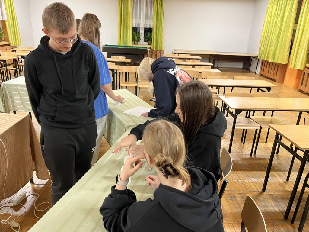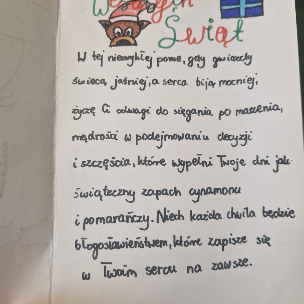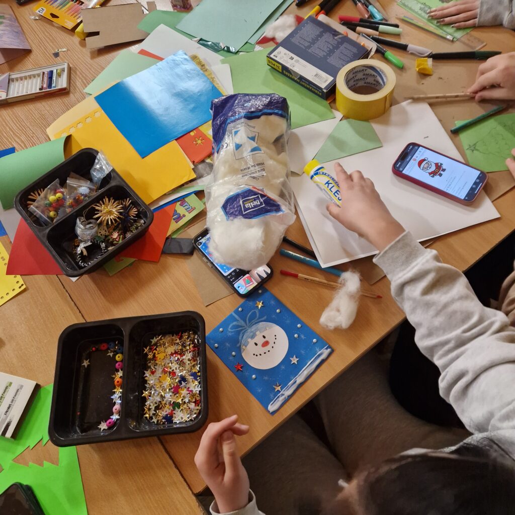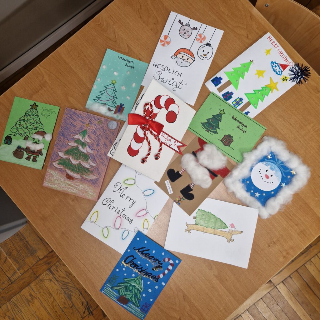 17.11.- Młodzież miała możliwość zaprezentowania talentu plastycznego, przygotowując kartki świąteczne dla podopiecznych Domów Pomocy Społecznej z powiatu mińskiego. Z ogromnym zaangażowaniem stworzyli piękne pracę, w środku znalazły się życzenia płynące prosto z serca.