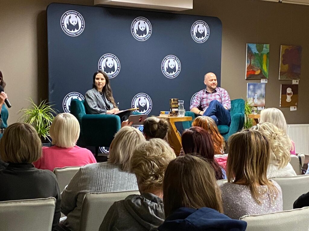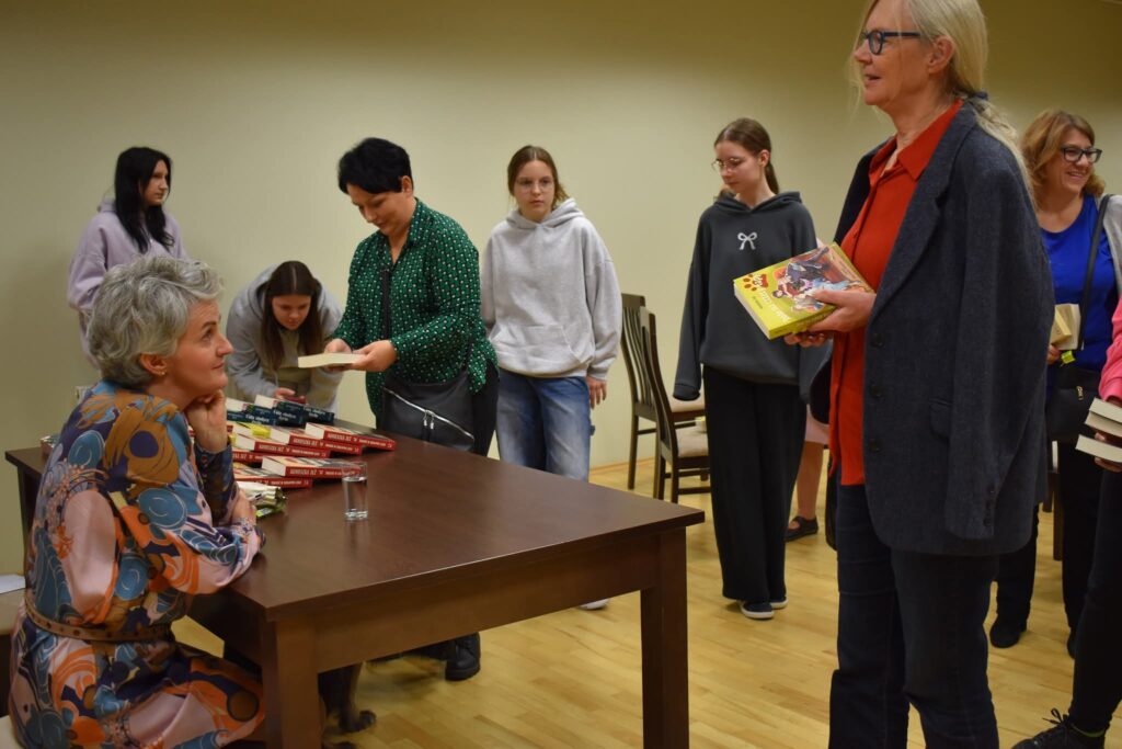 13.11– W Miejskiej Bibliotece Publicznej miało miejsce spotkanie autorskie z Panią Agnieszką Jeż oraz jej wiernym towarzyszem 🙂 Pani Agnieszka jest autorką 30 książek, jej najnowsze wydanie „Dom na cztery łapy” jest powieścią familijną, w której głównym bohaterem jest pies o imieniu BOB. Młodzież z ogromnym zaangażowaniem wsłuchiwała się w rozmowę z pisarką, a na koniec z ogromną radością głaskali czworonoga 🙂