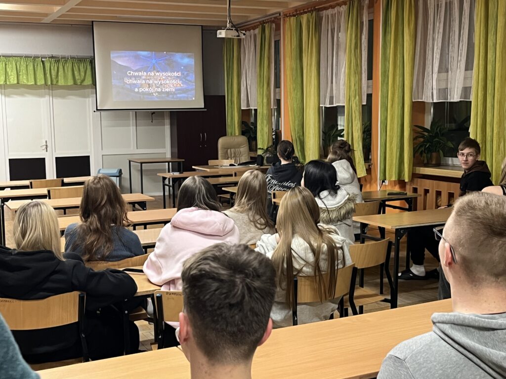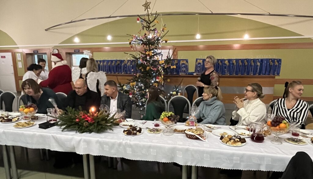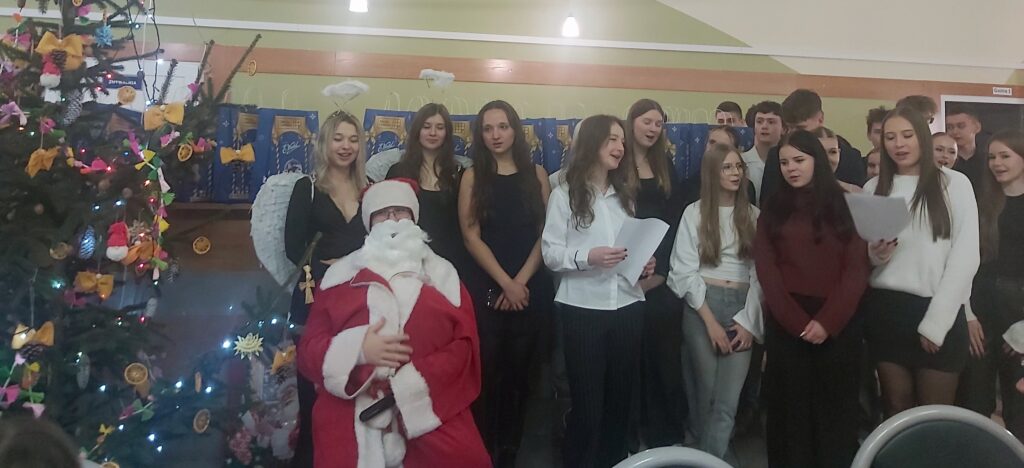 16.12- Tradycyjnie w naszym internacie odbyła się wigilijna kolacja, połączona z przedstawieniem okolicznościowym pt. „Jest taki dzień”. Zaproszeni goście, Dyrekcja, kadra kierownicza, wychowawcy oraz młodzież mieszkająca w internacie podzielili się opłatkiem i zjedli tradycyjne wigilijne potrawy. Odwiedził nas również św. Mikołaj, który śpiewał z nami wspólnie kolędy i wręczył wszystkim okolicznościowe prezenty.